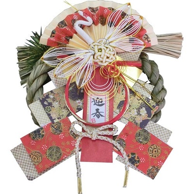 五色の短冊と大振りな鶴が華やかなリース飾り