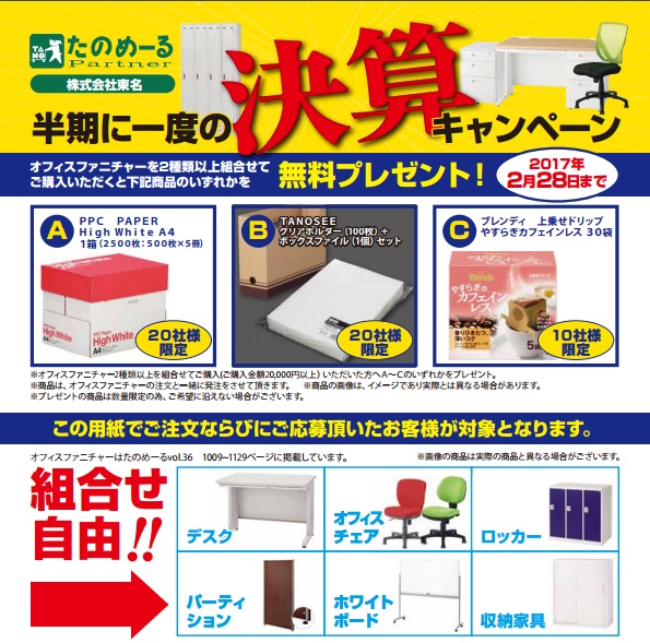 オフィスファイニチャーを専用のオーダーシートから、2種類以上ご注文を頂きますと、