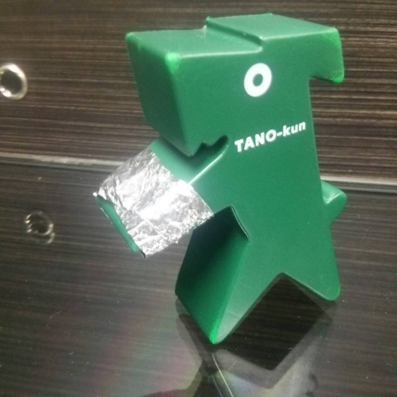 アルミホイルを適当な大きさに切って、指輪みたいに指に巻き付けるだけ。