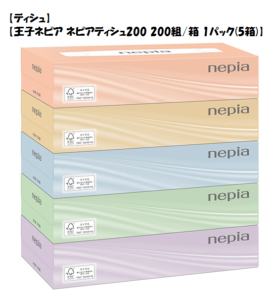 【王子ネピア ネピアティシュ200 200組/箱 1パック(5箱)】