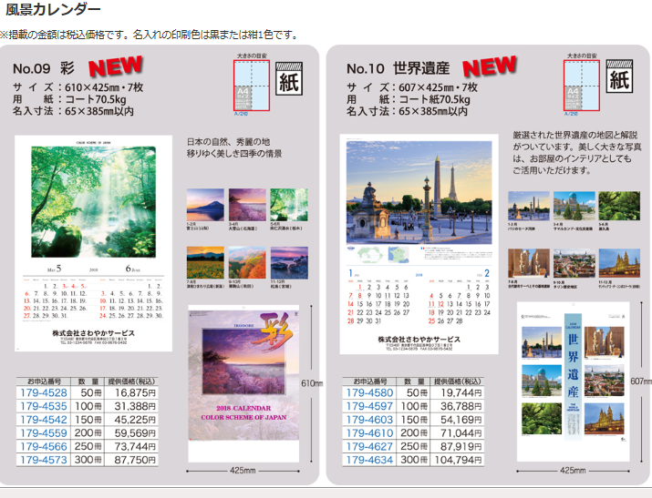 \今ならスーパー早割10%OFF/2018年度 名入れカレンダー