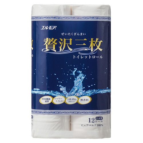 カミ商事 エルモア 贅沢三枚トイレットロール 3枚重ね 22m 1パック(12ロール)
