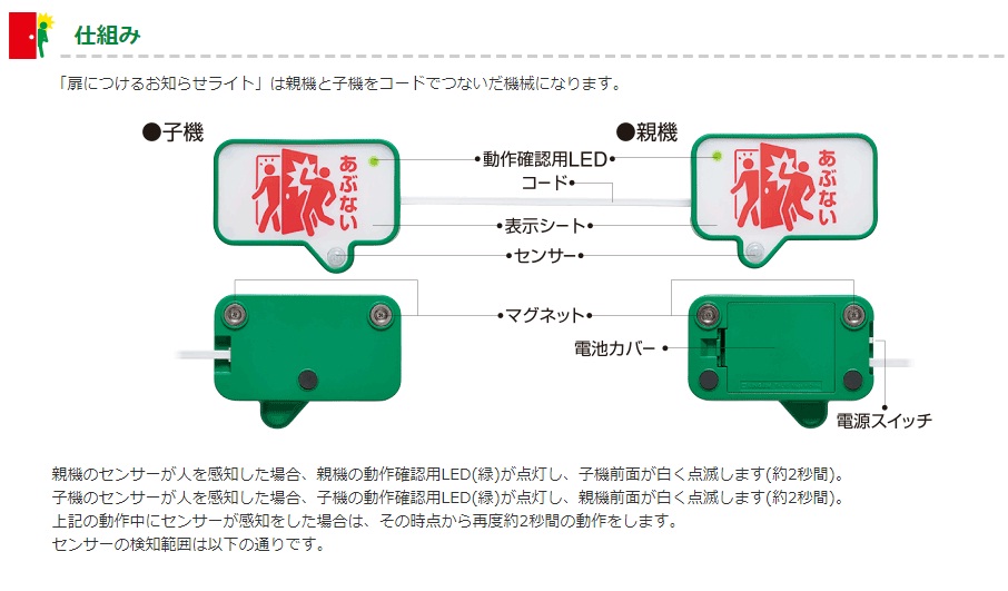 ●電池寿命:約6ヵ月(1日あたり30回センサーが感知時)