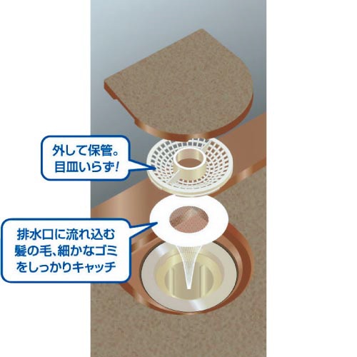 ●目皿のお掃除いらず。排水パイプの詰まりを防ぎ、イヤなニオイの発生も抑えます。