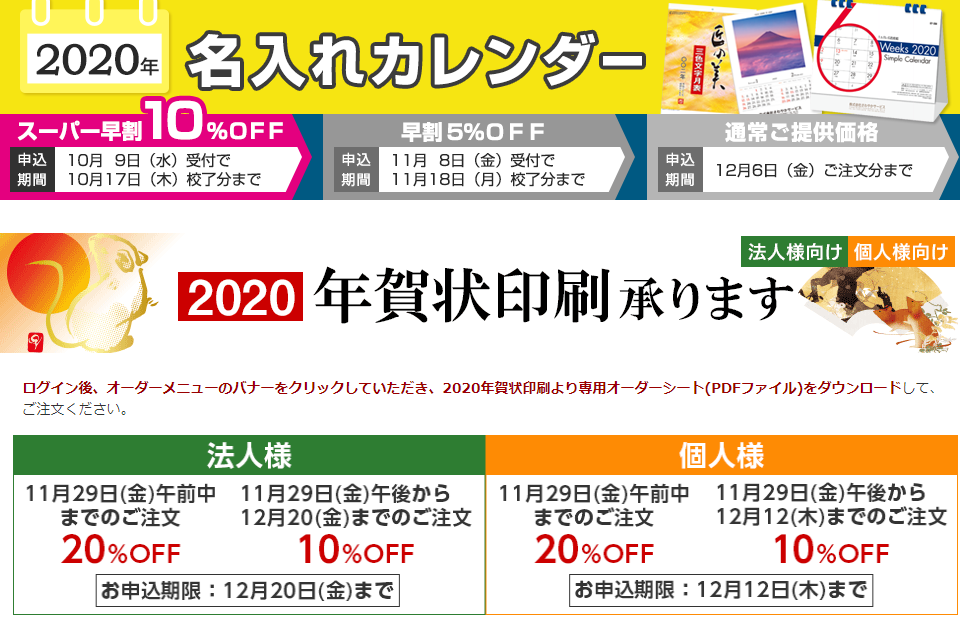 年末の慌ただしさが緩和できたり、年賀状印刷などは早割がありますのでお得にすることができます。