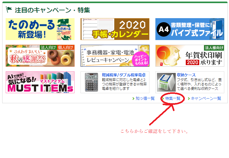 インターネットたのめーるにログイン後「注目のキャンペーン・特集」をご確認下さい。