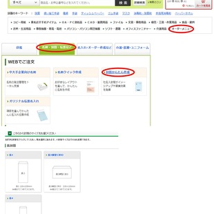 2.「オーダーメニュー」→「名刺・封筒・伝票など」→「封筒かんたん作成」の順に進んで下さい。