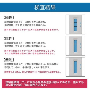 簡易検査キットになり、体内のウイルス量、検出対象物の量、検査実施タイミングによっては検出することができない可能性がありますので、ご注意ください。